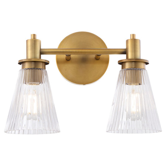 Savoy Essentials Holton 2 Light Bath, Warm Brass/Clear Ribbed