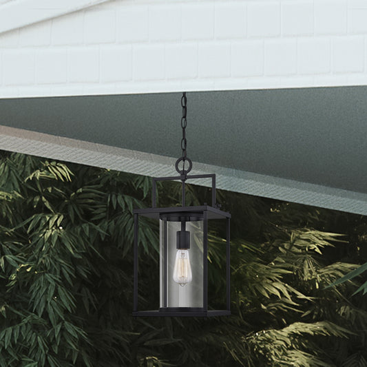 Quoizel Garrett 1 Light Outdoor Hanging, Matte Black/Clear