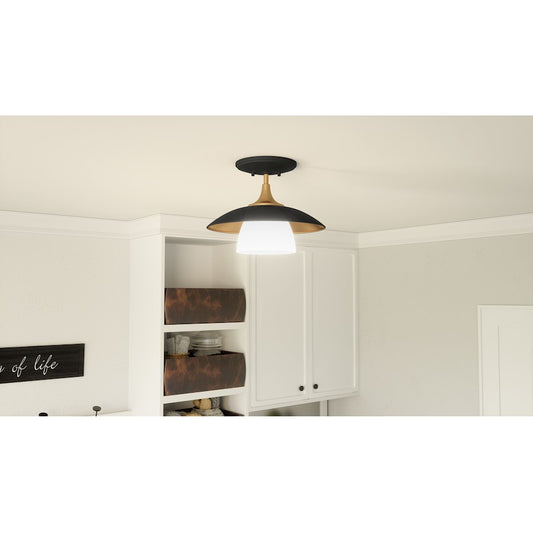 Quoizel Burbidge 1 Light Semi-Flush Mount, Matte Black/Cream Linen
