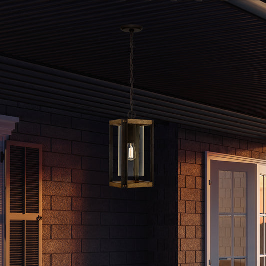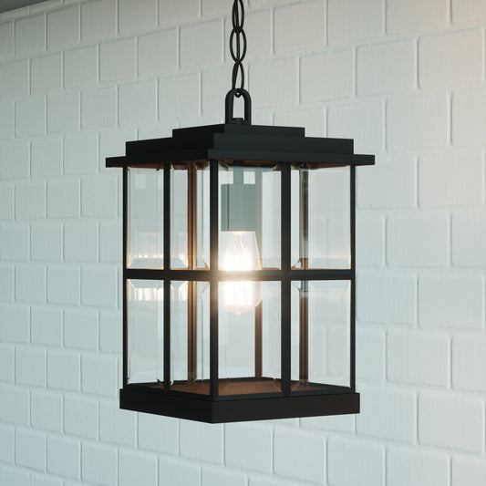 Quoizel Marion Square 1 Light Outdoor Hanging, Black/Clear