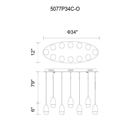 12 Light 34" Multi Light Pendant, Chrome