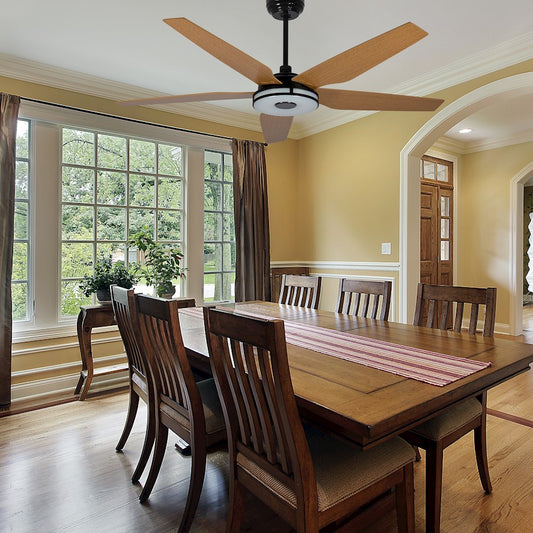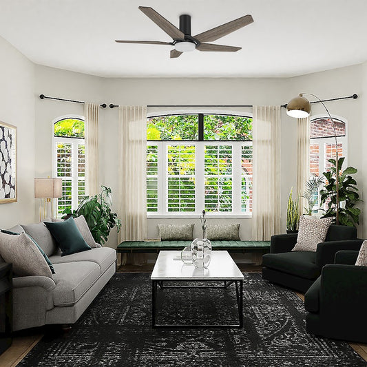 Carro Gladiolus 52" Smart Ceiling Fan/Light Kit, Black/Wooden