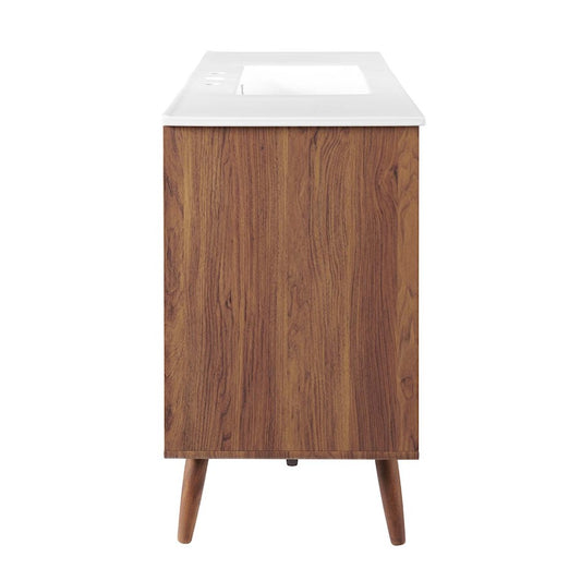 48" Single Sink Bathroom Vanity Light, Walnut White