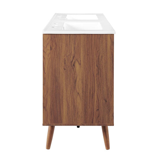 48" Double Sink Bathroom Vanity Light, Walnut White