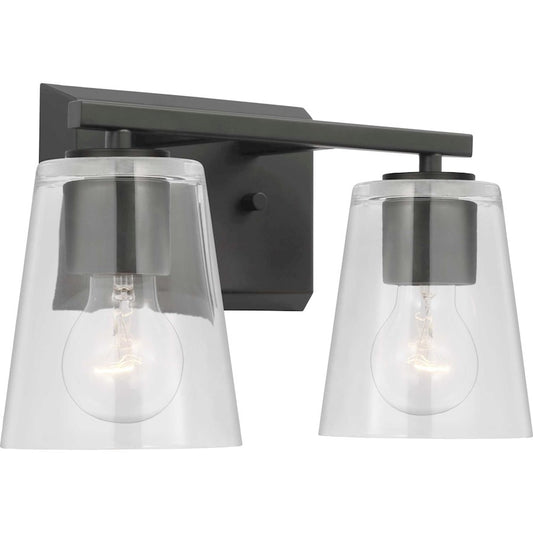 2 Light, Clear Seeded Farmhouse Bathroom Vanity Light