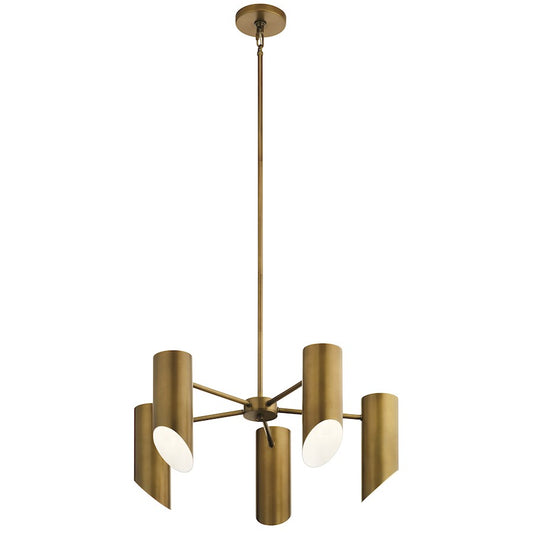 5 Light Chandelier, Brushed Natural Brass