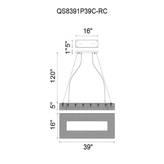Quoizel Shadow Linear LED Light Chandelier, Black Chrome/Smoke