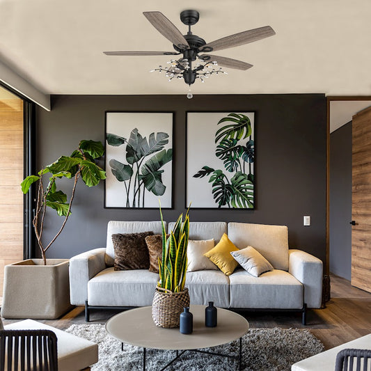 Carro Gladiolus 52" Smart Ceiling Fan/Light Kit, Black/Wooden