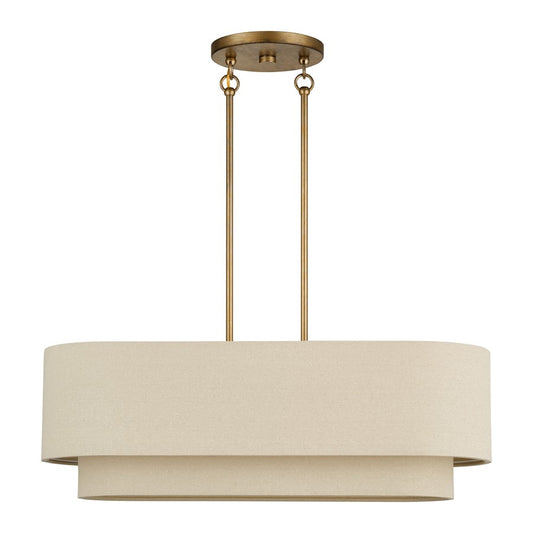 Livex Weavington 4Lt Large Linear Chandelier, Gold/Rustic Walnut