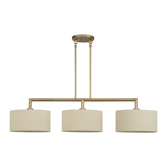 Livex Weavington 3Lt Medium Linear Chandelier, Gold/Rustic Walnut