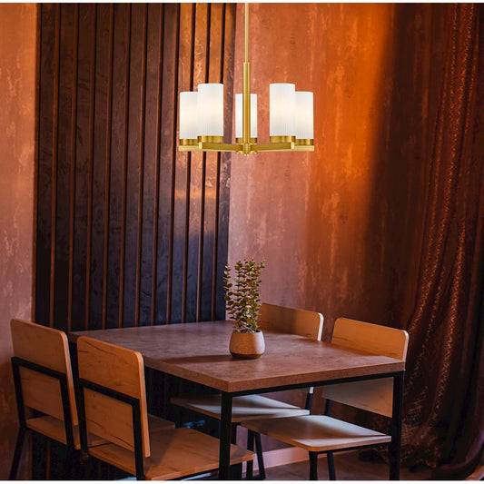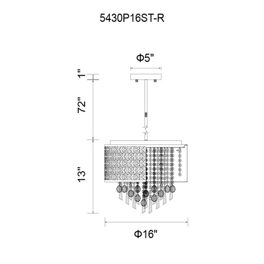 5 Light 16" Drum Shade Chandelier, Stainless Steel