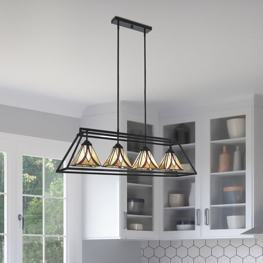 Quoizel Asheville Linear 4 Light Chandelier, Bronze/Tiffany