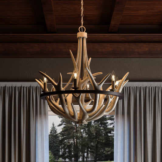 6 Light 27" Chandelier, Antique Gold