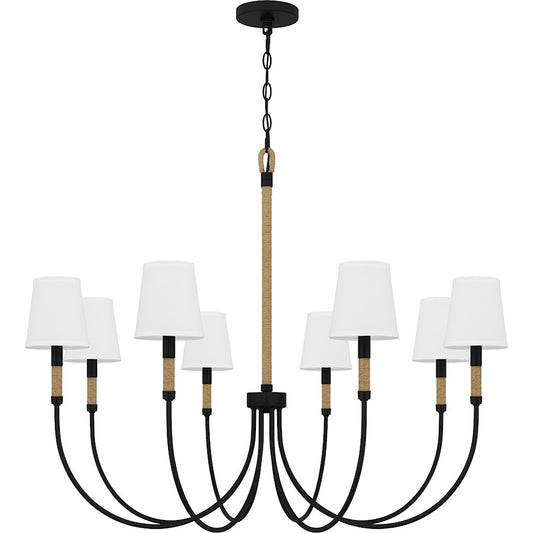 Quoizel Bayside 8 Light Chandelier, Matte Black/White Fabric