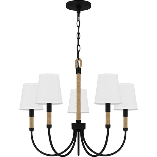 Quoizel Bayside 5 Light Chandelier, Matte Black/White Fabric