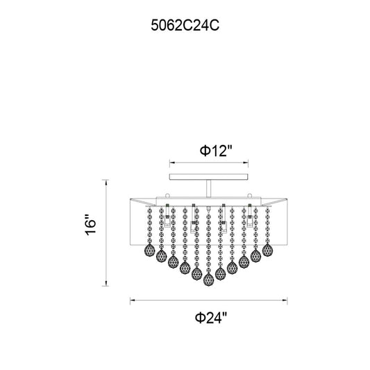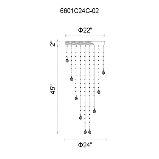 CWI Lighting Rain Drop 9 Light 24" Flush Mount, Chrome