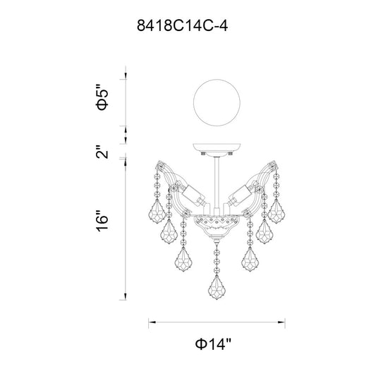 CWI Lighting Queen 4 Light 14" Flush Mount, Chrome