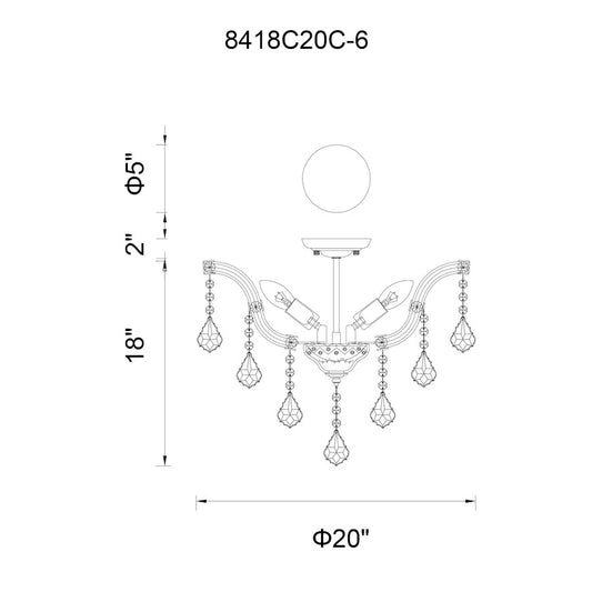CWI Lighting Princess 6 Light 20" Flush Mount, Chrome