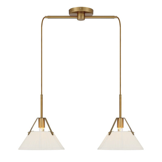 Meridian Vintage 2 Light Linear Chandelier, Natural Brass/White