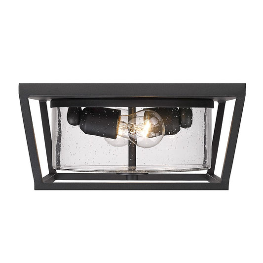 Golden Lighting Mercer 2-Light Outdoor Flush Mount, Black/Seeded