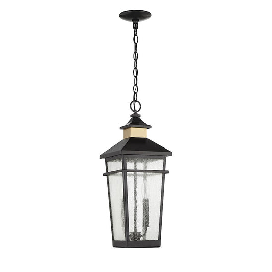 Savoy House Kingsley 2Lt Outdoor Hanging Lantern, Black/Brass