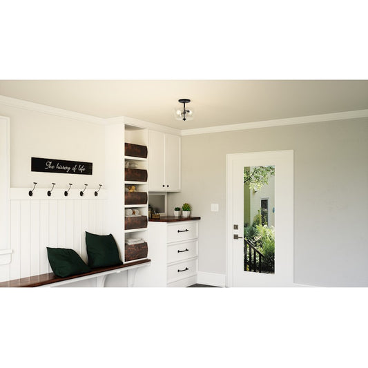 Quoizel Baud 2 Light Semi-Flush Mount, Black/Clear Painted White
