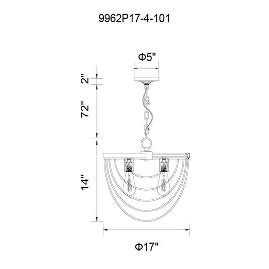 4 Light 20.25" Chandelier Small Chandelier, Black
