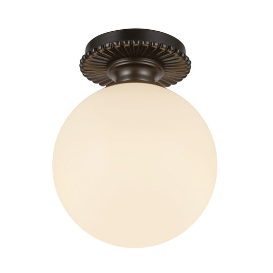 Kuzco Otis 8" Socket Semi-Flush Mount, Black/Glossy Opal Glass