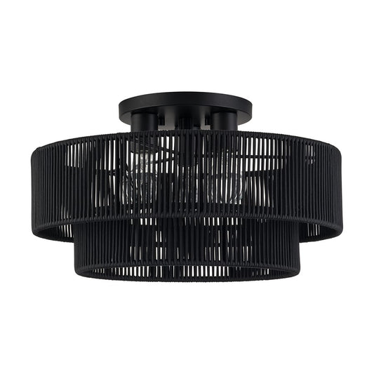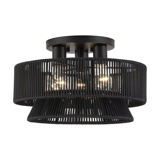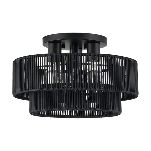 Livex Deluna 3Lt 14" Dia Semi-Flush, Black/Hand-Woven Black