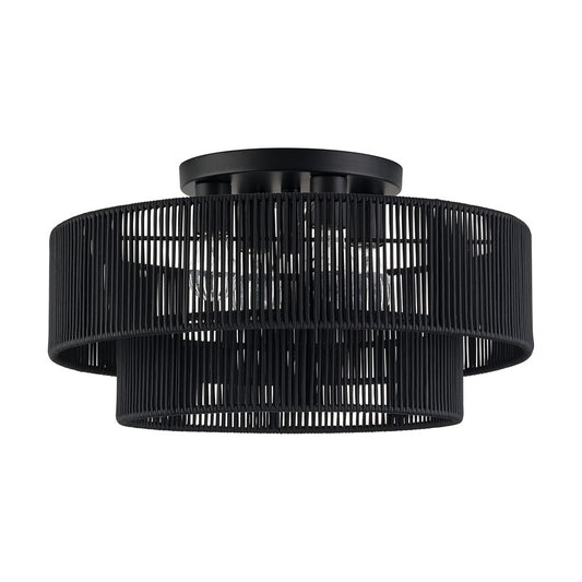 Livex Deluna 3Lt 18" Dia Semi-Flush, Black/Hand-Woven Black