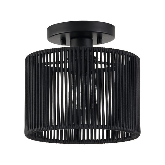 Livex Deluna 1Lt Small Semi-Flush, Black/Hand-Woven Black