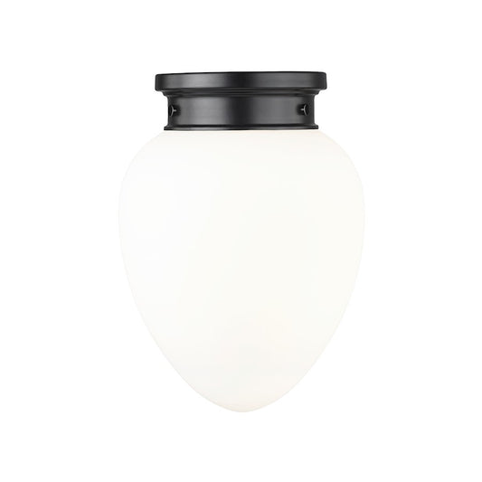 Z-Lite Gideon 1 Light 13" Flush Mount, Matte Black/Etched Opal
