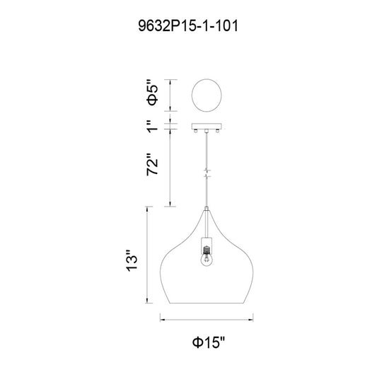 1 Light 15" Down Pendant, Black
