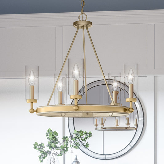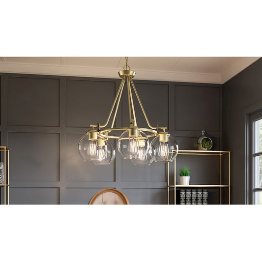 Quoizel Celadon 5 Light Chandelier, Aged Brass/Clear