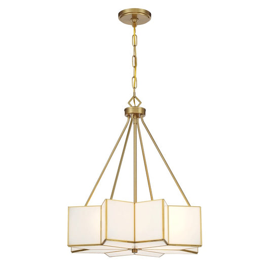 Savoy House Pastis 4 Light Pendant, Warm Brass/White
