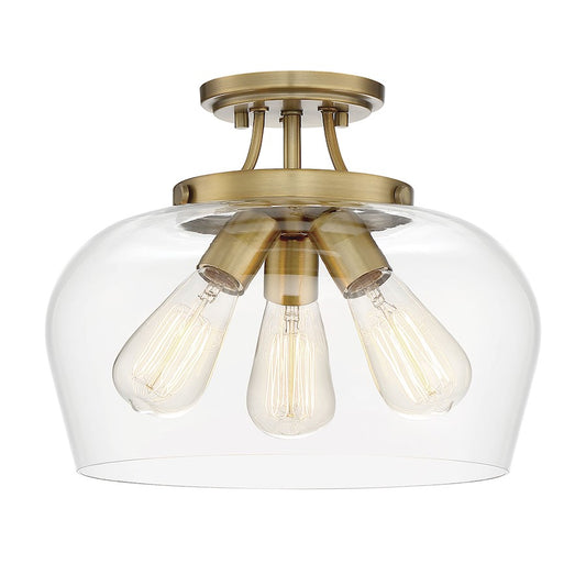 Savoy House 3-Light 15" Ceiling Light, Natural Brass