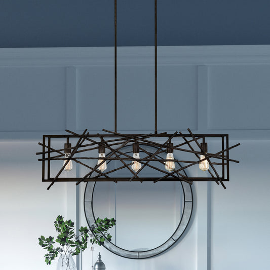 Quoizel Brigham Linear 5 Light Chandelier, Restored Bronze