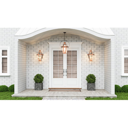 Quoizel Rue De Royal 2 Light Outdoor Lantern, Copper/Clear Tempering