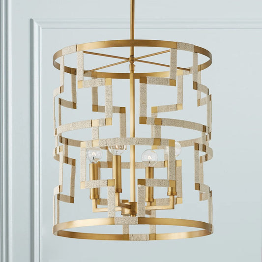 Capital Lighting Hala 4 Light Foyer, Bleached Natural Jute/Brass