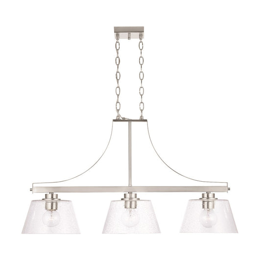 Homeplace Lighting Mattie 3 Light Island, Brushed Nickel/Clear Seeded