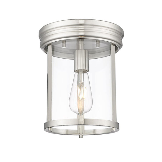 Z-Lite Thayer 1 Light Flush Mount, Brushed Nickel/Clear