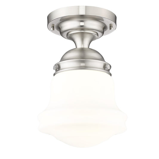 Z-Lite Quinn 1 Light Semi Flush Mount, Satin Nickel/White