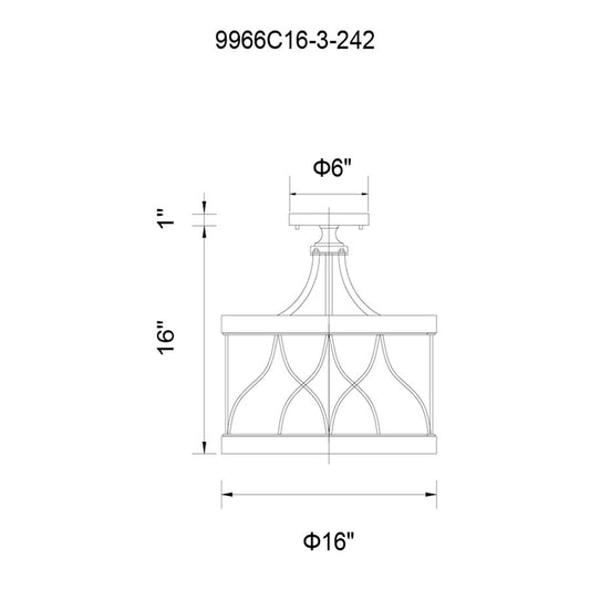 CWI Lighting Amazon 3 Light Cage Semi-Flush Mount, Gun Metal