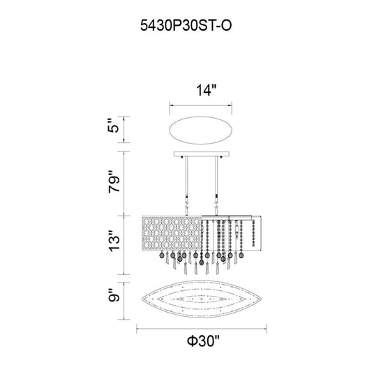 5 Light Drum Shade Chandelier, Stainless Steel