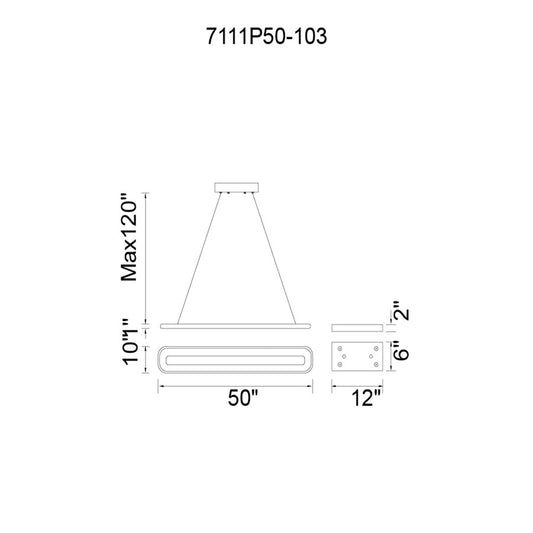 6 Light 48" Chandelier, Platinum Dusk