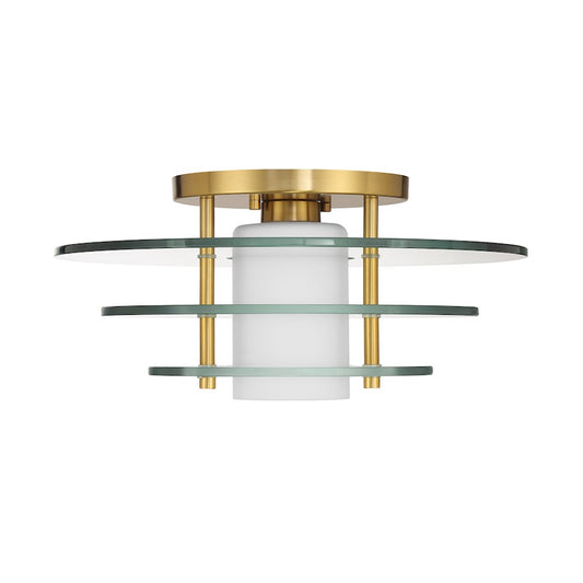 Savoy House Newell 1 Light Semi-Flush, Brass/Clear/White Opal