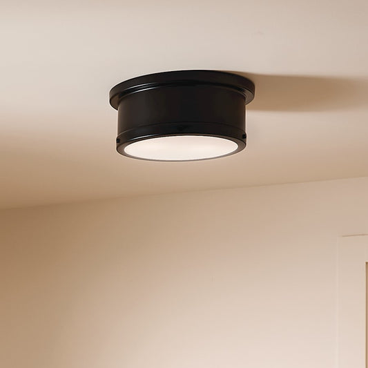 Kichler Ceiling Space 1 Light Flush Mount Led, Black/Opal Etched
