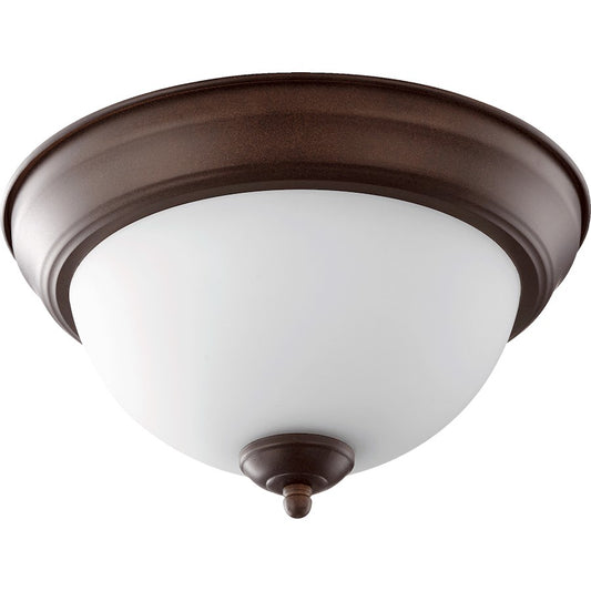 Quorum Light Flush Mount, Oiled Bronze/Linen
