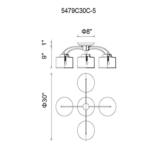 CWI Lighting Luminous 5 Light Flush Mount, Chrome