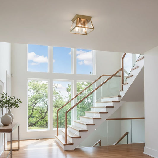Artcraft Lucian 4 Light Flush Mount, Brushed Brass/Clear